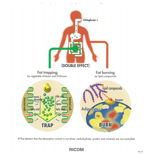 翌生美闪瘦植物纤维粉富含金针菇粉(金针菇纯化物):即β-glucan复合几丁聚糖,可包覆肠粘膜绒毛,阻断、抑制脂肪吸收,促进脂肪随粪便排出体外,防止过度脂肪蓄积,并促进过度蓄积的体脂氧化燃烧,达到纯植物健康减肥的目的。具体如下:
