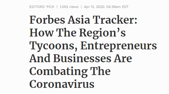 福布斯盘点企业家抗疫 一起康康马云李彦宏都做了啥