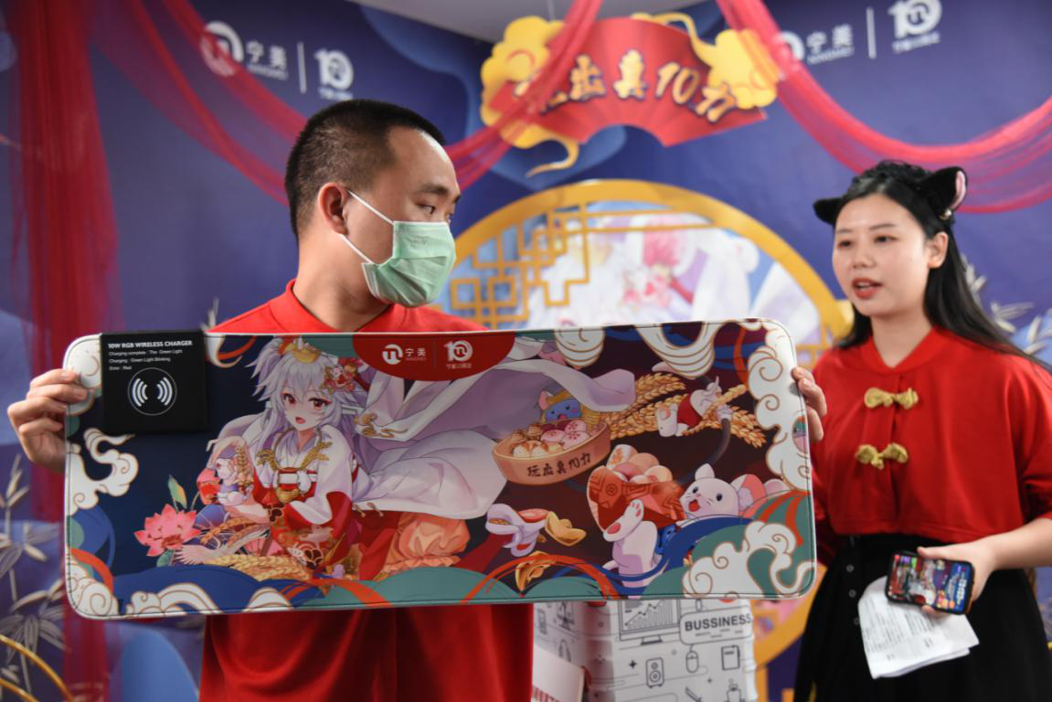 直播间展示出了既是“史上最轻”、又“有颜能打”的宁美10周年定制主机:宁美-魂-GS10,宁美CEO在线讲解新款主机,为围观群众们答疑解惑,还秀出了几款宁美-魂-GS10的定制皮肤,尽情向大家展示什么是“换主机皮肤像换手机壳一样简单”!CEO在线放送福利,直播送出机箱贴等宁美10周年定制大礼,还向购机用户“大放价”,直播间下单购机尽享百元优惠直降,还有定制鼠标垫等多款好礼相送,一时掀起抢购浪潮!