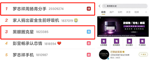 而网友们困惑多年的疑惑,“罗志祥为什么一直有黑眼圈”,终于得到了解答。欧莱雅眼霜的广告话题“黑眼圈克星”冲上了微博热搜第三。”网友们纷纷发起#本人黑眼圈声明#自证清白,表示自己的是正经黑眼圈,纯粹是熬夜加班追剧整出来的,大家请放心交友。国漫IP《哪吒之魔童降世》也追了波热点:“吒儿的黑眼圈从小就有,肯定没有任何不良嗜好。”