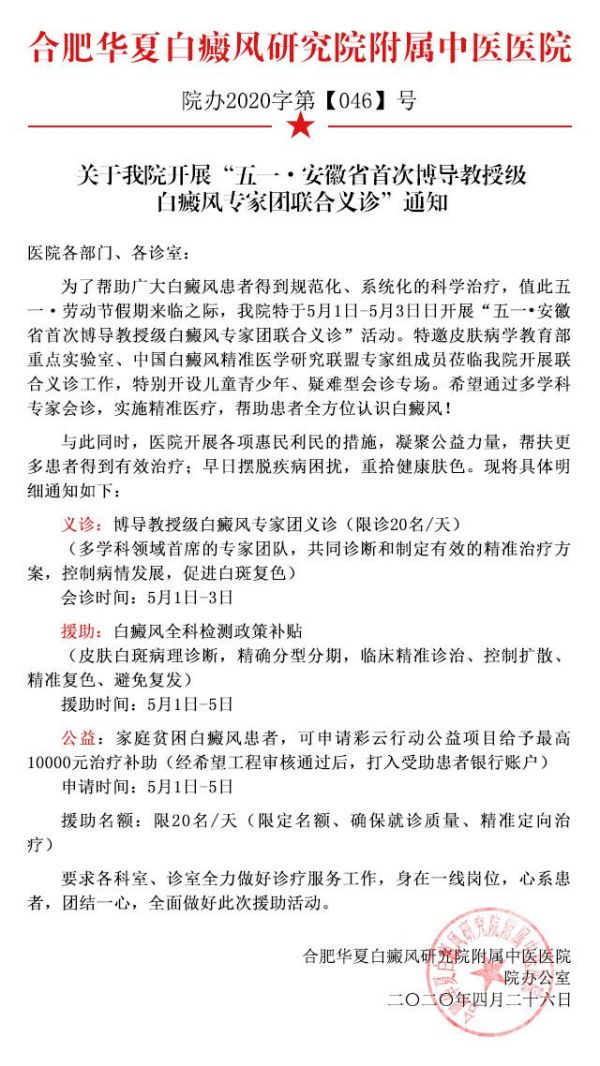 合肥华夏开展五一·安徽省首次博导教授级白癜风专家团联合义诊