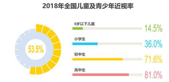 近视防控一直是十分热门的社会议题,护眼形式越发严峻。60年前中国孩子的近视率才是13%,可是随着青少年的学业加重,以及电子设备的普及,我国儿童青少年近视情况已经日趋严重。国家卫健委2018年公布的一份数据中,显示我国儿童青少年总体近视率为53.6%,且整体有低龄化趋势。