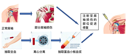 另有研究表明,腱-骨之间修复因子的缺乏是肩袖损伤难以愈合的主要原因,富血小板血浆(PRP)可以有效促进腱-骨愈合,是当前研究最多的用于肩袖撕裂和修复的佐剂之一。PRP分泌的生长因子可以促进受损部位血管的重塑以及加速肌腱的修复,被认为可能会是治疗肩袖疾病更好的选择。
