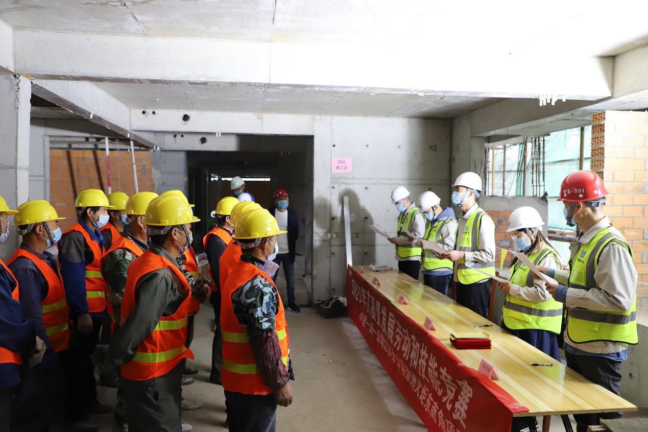 项目经理丛靖靖介绍说,项目目前正处于二次结构阶段,ALC板的安装是近阶段的重点工作,希望能够通过技能竞赛不断培养出更多的岗位技能型人才,同时在持续开展劳动竞赛的过程中营造比、学、赶、超的氛围,积极创建优秀班组、积极争当优秀管理人员。