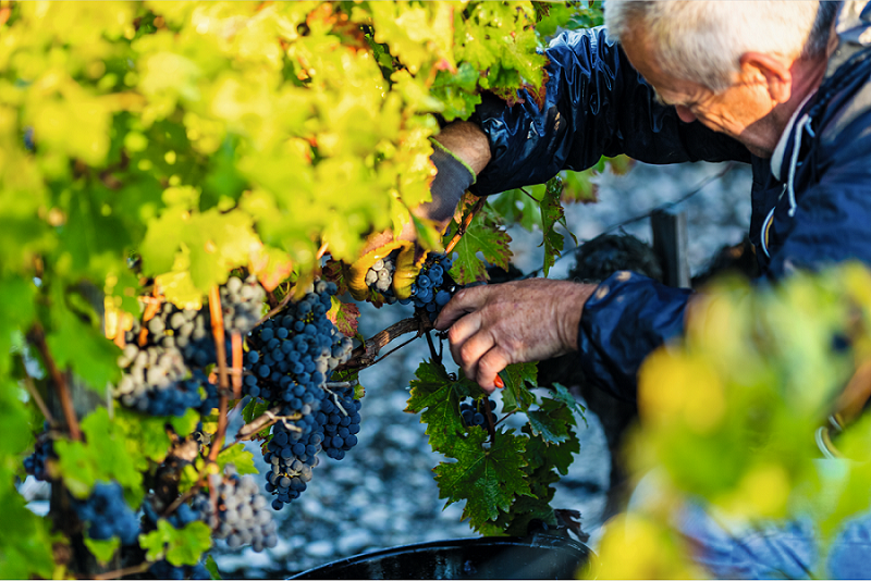 葡萄收获对酒庄来说是一年最重要的时刻,很多酒庄会在葡萄进入转色期后就对其成熟度进行密切的监测。葡萄采收过早,可能不够成熟,用其酿成的酒则会过酸、酒精度低并且生青味明显。采摘过晚,葡萄可能受到秋季寒冷天气或疾病的侵袭。选择最恰当的采收时机能从源头保证成酒中各要素的平衡。