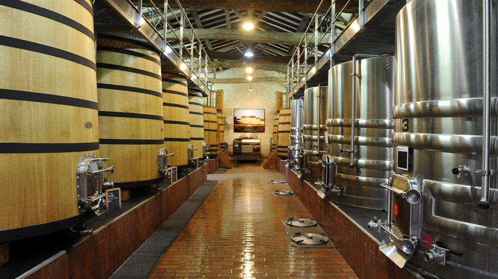 唯诺酒庄发酵车间(左为橡木桶,右为不锈钢桶)