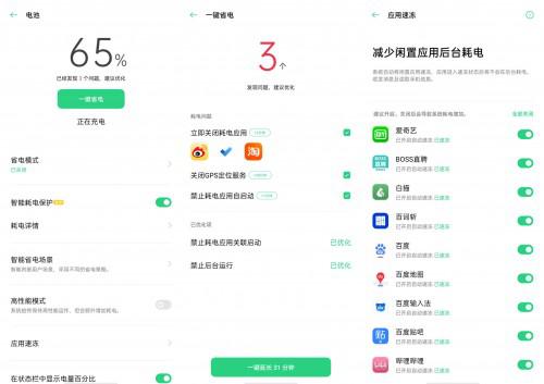 5G 省电只是一部分的节流,ColorOS 7.1 里还有更智能的功耗管理。用户可在‘设置’-‘电池’里‘一键省电’,系统会自动帮助用户处理当前系统高耗电的问题;除此之外,也推荐大家打开‘智能耗电保护’选项,这样我们在使用手机时,ColorOS 就会给我们默默地在后台合理安排耗电功能,最终起到省电延长手机续航的作用。