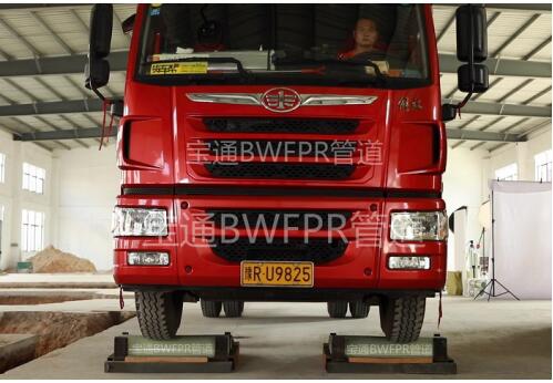 7.5吨的卡车轧过,也没有造成结构性损坏,即使液压机压扁,也能快速复原;即使4.5米空中坠落,也能完好无损……宝通BWFRP管道用一系列试验证明自己的实力。