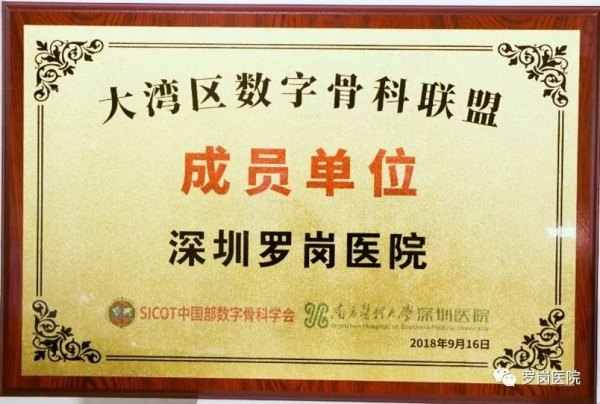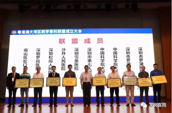 10月14日,粤港澳大湾区80家医院齐聚南方医科大学深圳医院学术会议中心,成立“粤港澳大湾区数字骨科联盟”,并举办了数字骨科新技术学习班,深圳罗岗罗岗医院光荣地成为其中一员,是为数不多的社会办医疗机构之一。罗岗医院业务院长谢祥俊出席了大会并接受了授牌。