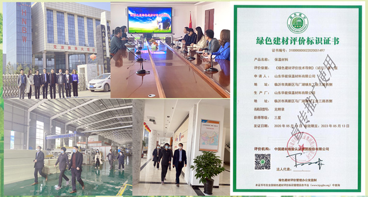 山东华能保温材料有限公司获得全国绿色建材评价三星标识题记。2020年4月23日至25日,由中国建材检验认证集团股份有限公司专家一行三人莅临山东华能保温材料有限公司进行绿色建材评价三星标识的审核验收工作。三位专家认真审查材料、与申报公司相关部门负责员工深切交流并进行现场查看后,得出一致结论:山东华能保温材料有限公司提交的五种产品性能指标及相关手续复合标准要求,通过评价工作,准予在“全国绿色建材评价标识管理信息系统”进行公示。