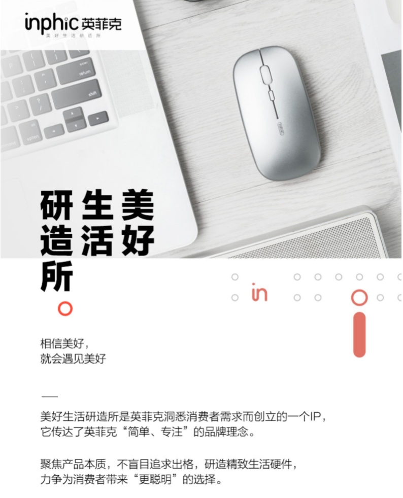 来看看英菲克的品牌主张——美好生活研造所。在人人都挤破头颅赚钱的时代,英菲克却提出“美好生活”的口号。这一口号,俨然是高压环境下的一股清流,主张生活的多元化,最重要的当然是开心过好每一天,让生活更加美好。