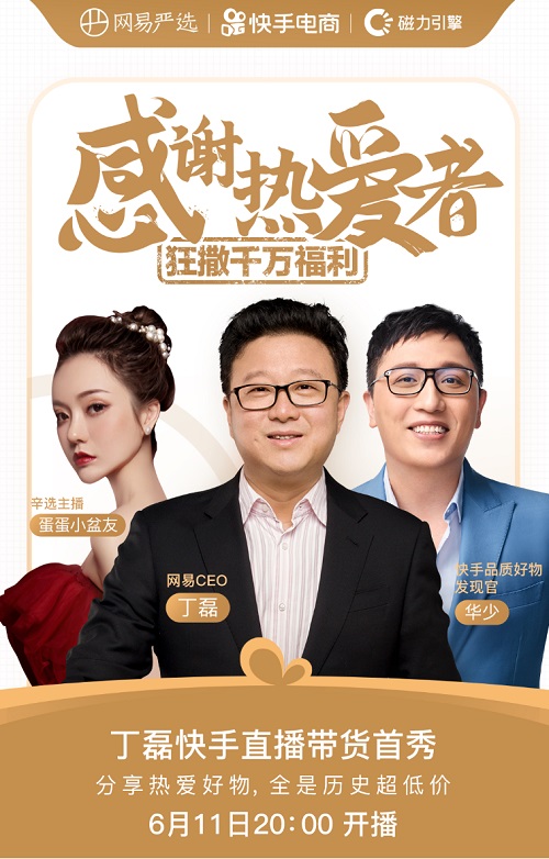 6月11日晚上,刚刚完成网易在港二次上市“云敲锣”的网易创始人兼CEO丁磊,又在快手联手辛选蛋蛋、名嘴华少开启首次直播“云带货“。