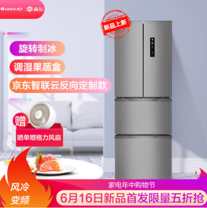 怎么样?听起来是不是很让你心动?是不是迫不及待想剁手了?别着急,这款由京东和格力合力打造的晶弘303升变频风冷多门定制冰箱将于6月16日零点在京东零售强势上线,限量预售1000台,618活动价2999元,还有“新品首发限量5折”等超多优惠活动等着你,先到先得。