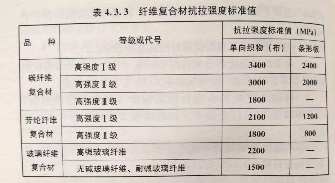 2.不同品种纤维复合材的抗拉强度标准值应按表4.3.3的规定采用。