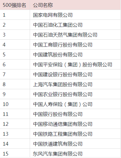 榜单上排名前三的分别是国家电网有限公司、中国石油化工集团公司(2.2万亿元)、中国石油天然气集团有限公司(2.2万亿元),中国工商银行股份有限公司(1.09万亿元)、中国建筑股份有限公司(1.05万亿元)紧随其后,这5家企业的营收都在万亿元以上。此外,今年共有172家企业达到千亿元级别营收。